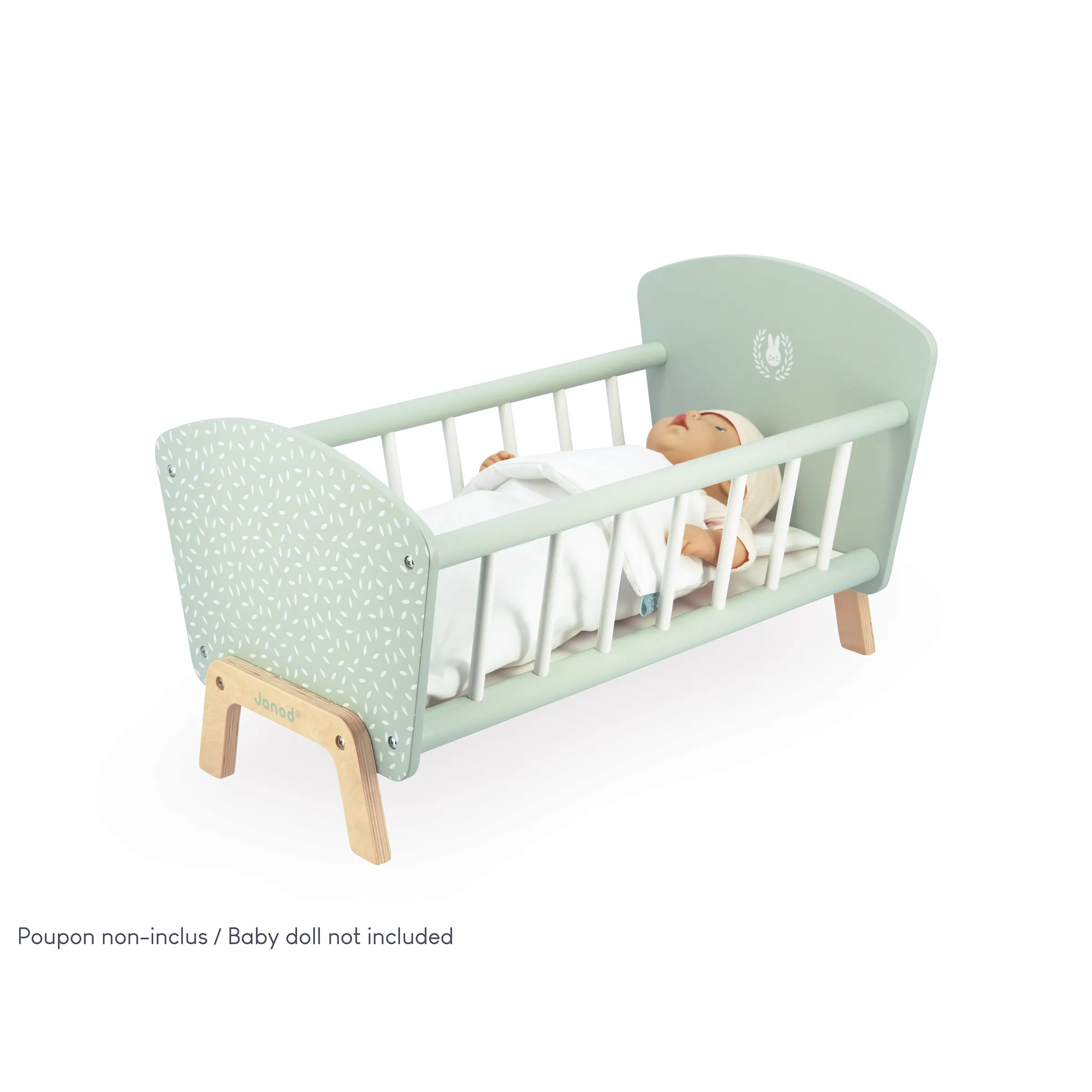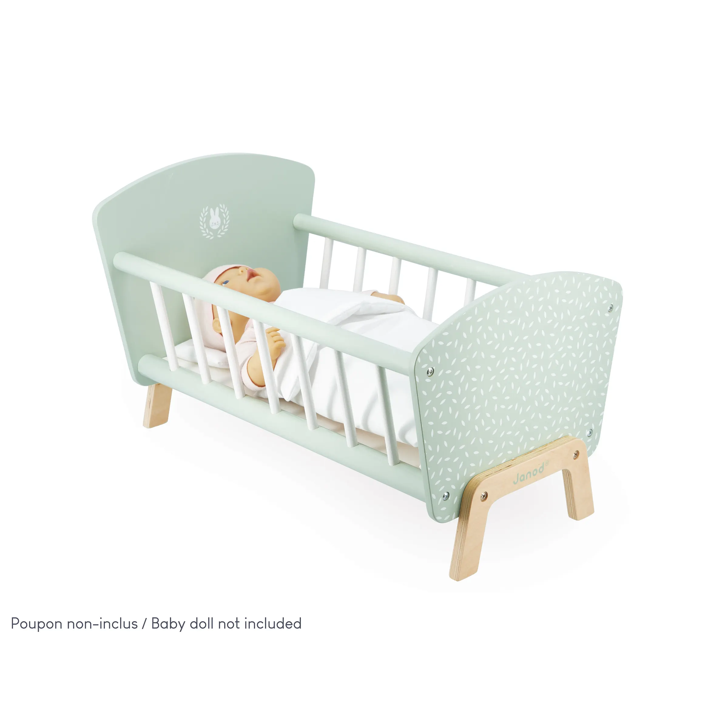 Time to put baby to bed… This stylish bed is perfect for putting your baby dolls to sleep so they can have a dreamy night’s sleep. Includes a blanket and a rabbit-shaped pillow, so it’s equally suitable for boys and girls. Compatible with baby dolls up to 42 cm/16.5 inches (baby doll sold separately). Role-play toy made from Forest Stewardship Council (FSCTM) certified wood. For children aged 3 years and up.