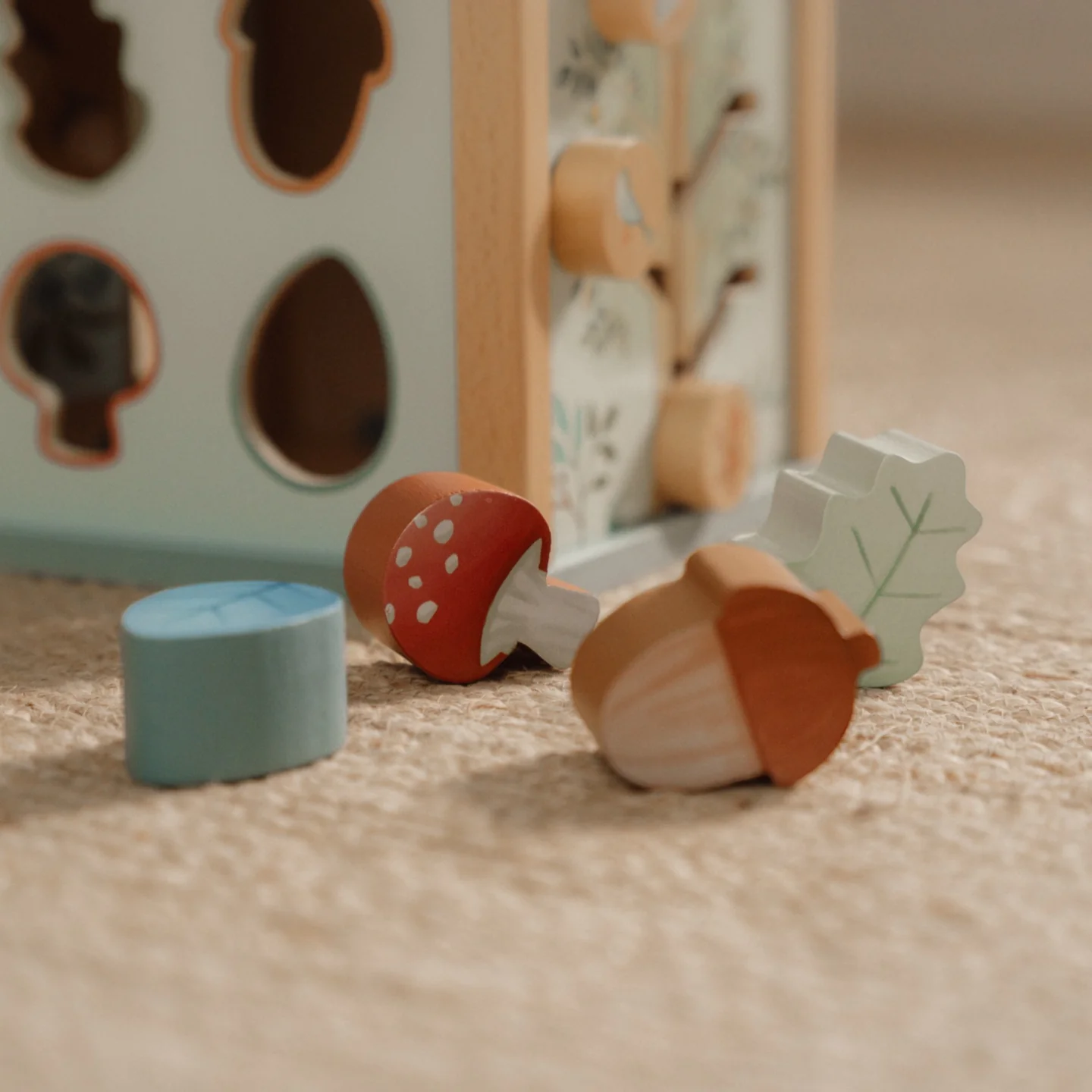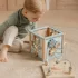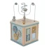 This wooden activity cube offers many challenges for children.
