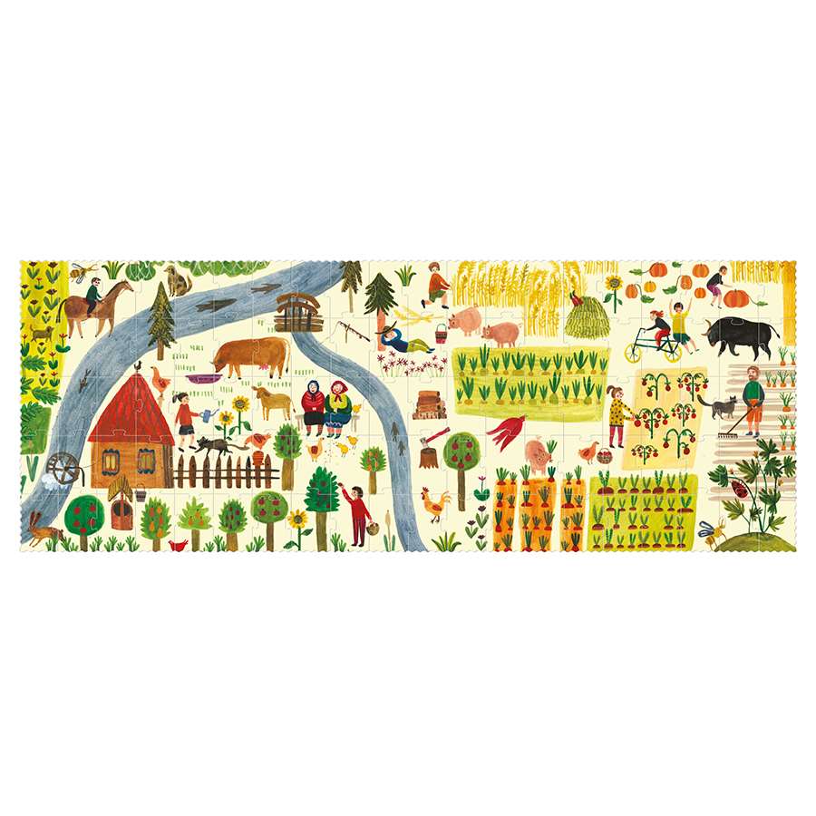 Londji’s “Walk on the Farm” puzzle will transport you to the countryside, where a feeling of harmony prevails – animals quietly go about their lives, children play, grandmothers chat, farmers go about their business. Drawings: Maria Dek. It enhances logic, spatial sense and imagination. Includes 100 pieces. Package dimensions: 24 x 24 x 8 cm. Puzzle dimensions: 85 x 32 cm.