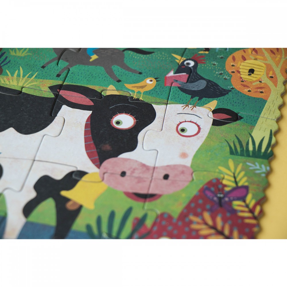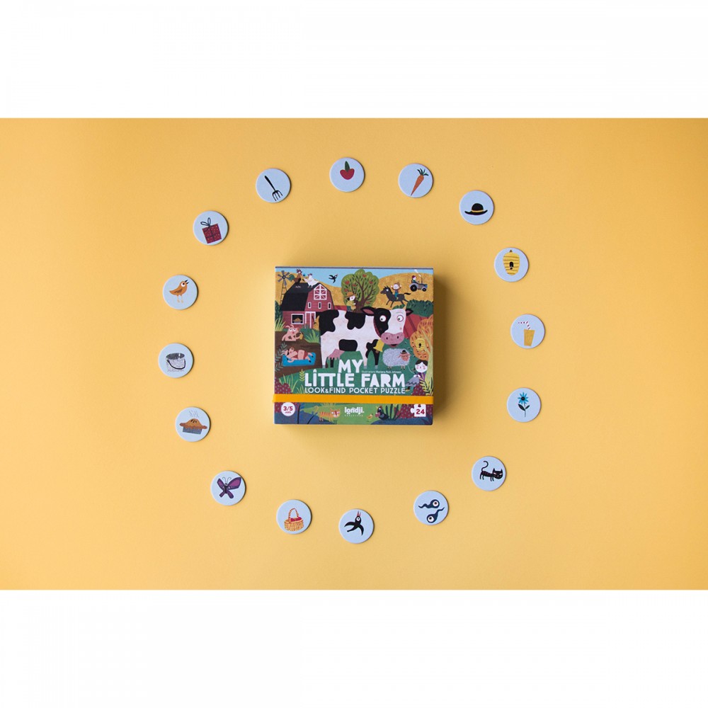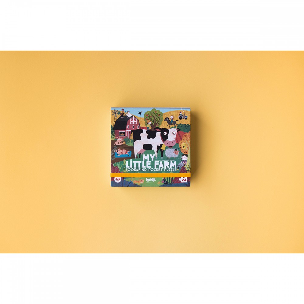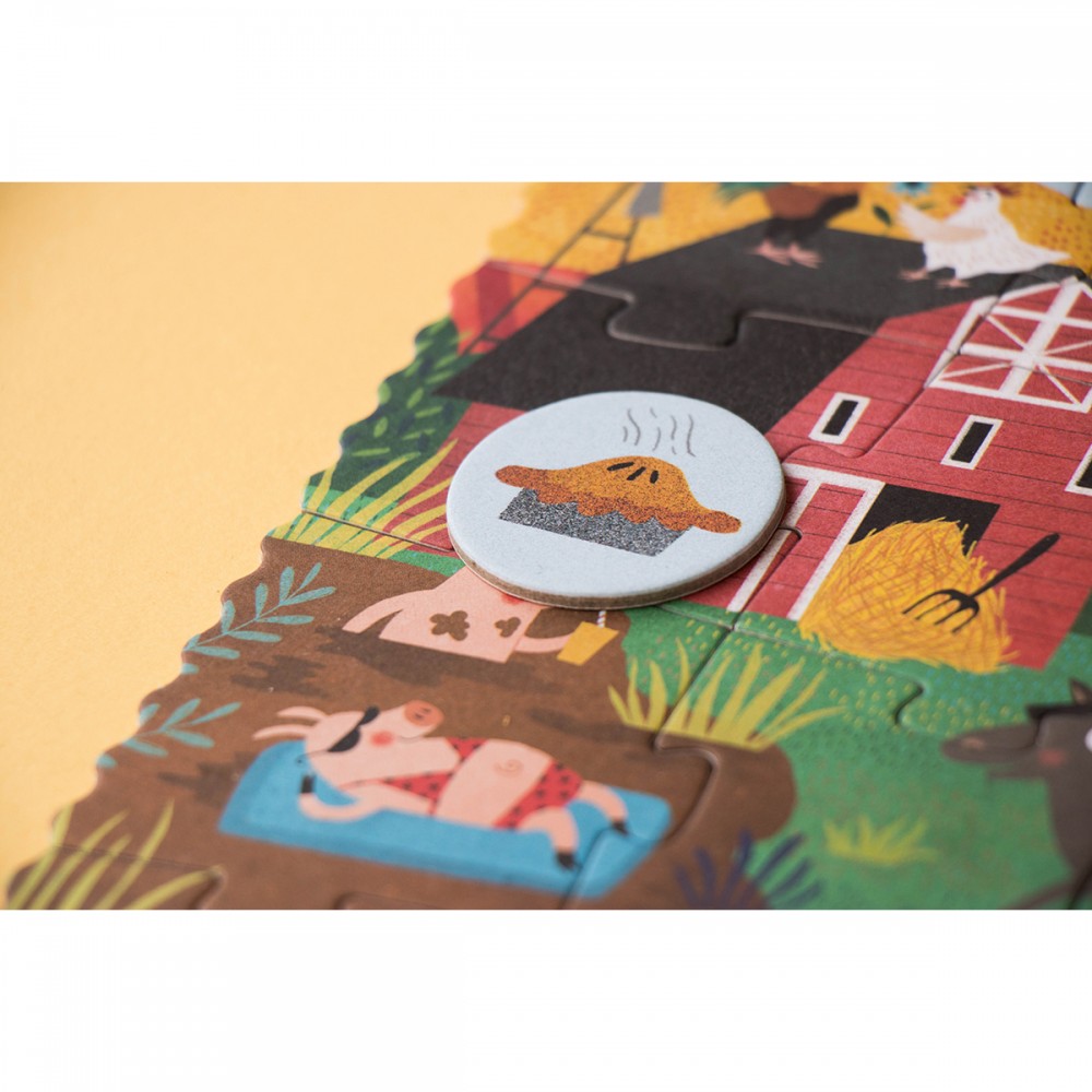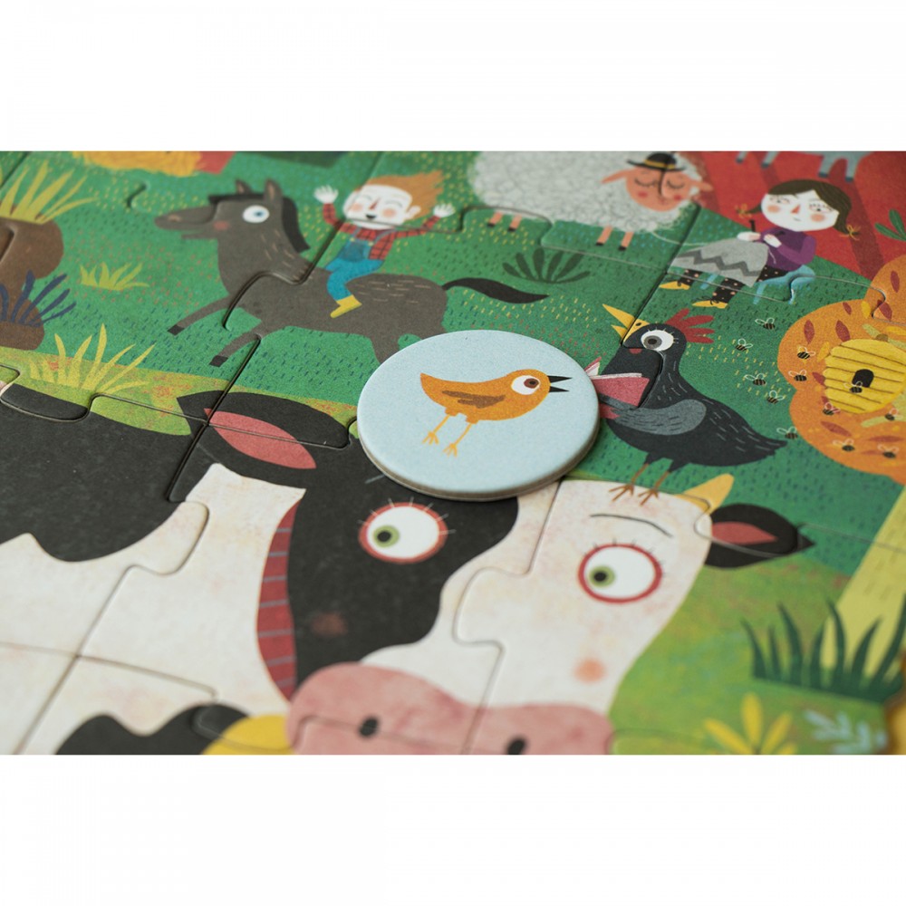 The wonderful “My Farm” puzzle in a pocket version with 24 pieces. Summer is here and the fun on the farm begins! The piglets are rolling in the mud under the hot sun, the chickens have started talking and the cow is making new friends. Make the puzzle and then play the observation game wherever you are, as this specific version allows you to have it with you everywhere.