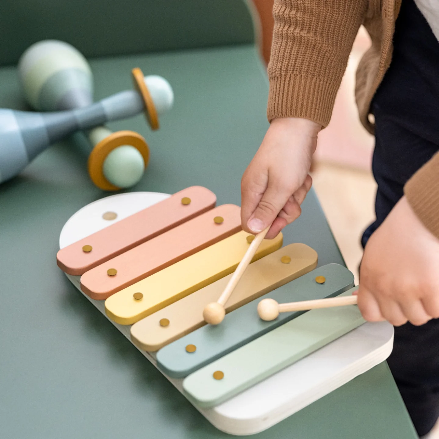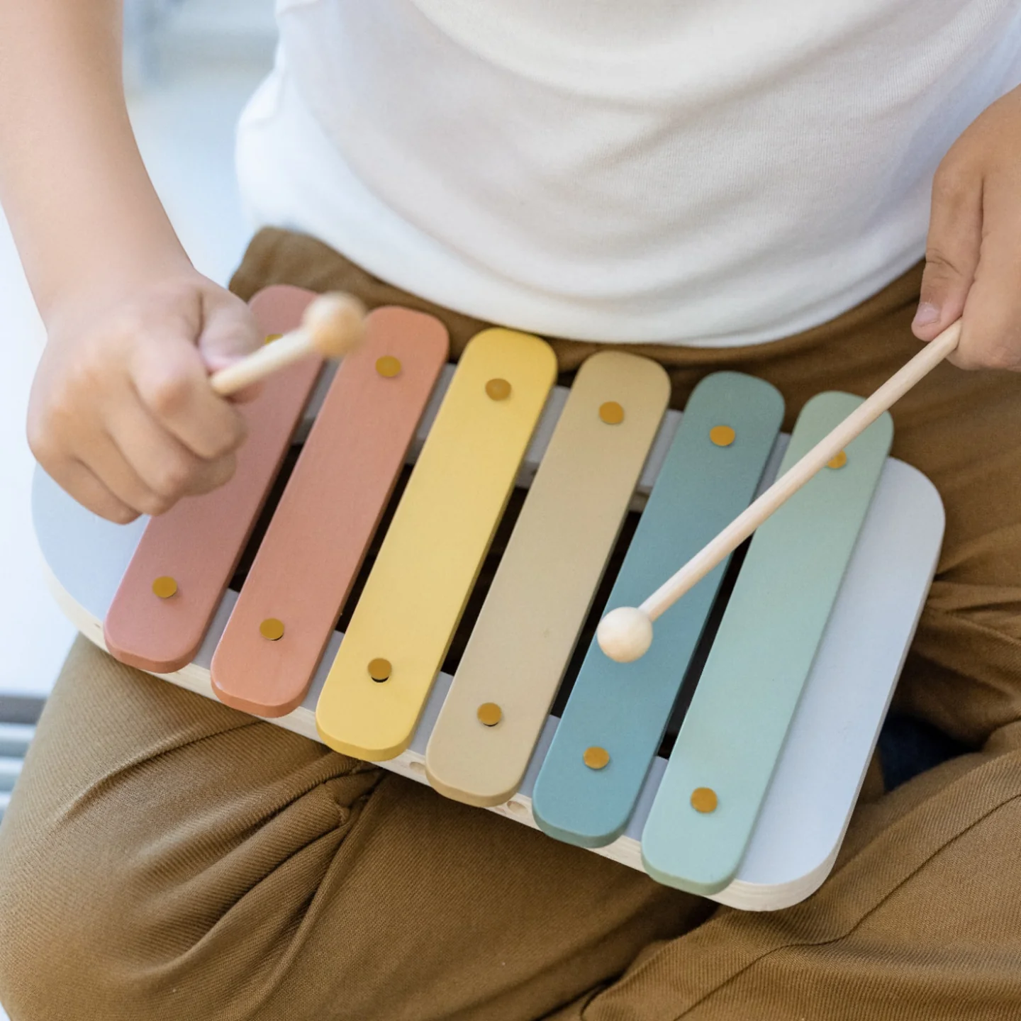 Μήπως είσαι ο επόμενος Μπετόβεν; Με αυτό το ξυλόφωνο θα αποκτήσεις επιμονή, δημιουργικότητα και αγάπη για τη μουσική! Κάθε μία από τις έξι γραμμές έχει διαφορετικό χρώμα, για να θυμάσαι και να αναγνωρίζεις την κάθε νότα. Εξασκήσου καλά και σύντομα θα ανταμειφθείς! Τα ξυλόφωνα έχουν το τέλειο μέγεθος για τα μικρά χεράκια. Μην ανησυχείτε μήπως χαθούν οι μπαγκέτες – υπάρχει χώρος αποθήκευσης μέσα στο όργανο. Το ξυλόφωνο μπορεί ακόμα και να κρεμαστεί στον τοίχο, ώστε να είναι πάντα όταν ο μικρός σας μουσικός θέλει να παίξει.