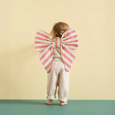Με αυτόν τον μεγάλο, γιορτινό φιόγκο, κάθε μέρα γίνεται λίγο πιο ιδιαίτερη! Στερεώνεται απαλά στην πλάτη με δύο ελαστικούς ιμάντες ώμων, προσφέροντας εύκολη εφαρμογή και άνεση χωρίς κόπο. Ο φιόγκος είναι επενδυμένος με πολυεστέρα, ώστε να διατηρεί το σχήμα του, προσφέροντάς του όγκο και χαριτωμένο χαρακτήρα χωρίς να προσθέτει βάρος. Ιδανικός για γενέθλια, παιχνίδι ρόλων ή για να δώσει λίγη μαγεία ακόμα και σε μια απλή καθημερινή μέρα, κάνει κάθε στιγμή πιο γιορτινή!