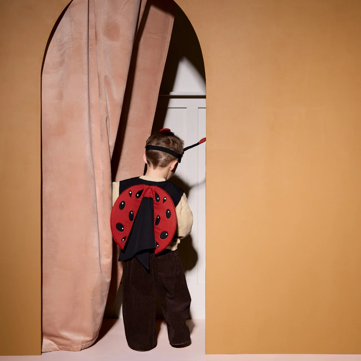 Ξέρατε ότι οι πασχαλίτσες βοηθούν τους κήπους να ανθίσουν τρώγοντας μικρά έντομα που βλάπτουν τα φυτά; Γι’ αυτό και τις αγαπάμε τόσο! Η πασχαλίτσα θεωρείται μικρός φύλακας του κήπου και φέρνει λίγη μαγεία σε κάθε φανταστικό παιχνίδι. Αυτό το υπέροχο κοστούμι περιλαμβάνει ένα μαλακό μαύρο γιλέκο, φτερά σε βαθύ κόκκινο με κεντημένες μαύρες βούλες και μια ενισχυμένη κορδέλα με απαλές, ευλύγιστες κεραίες – η απόλυτη μεταμόρφωση σε πασχαλίτσα!