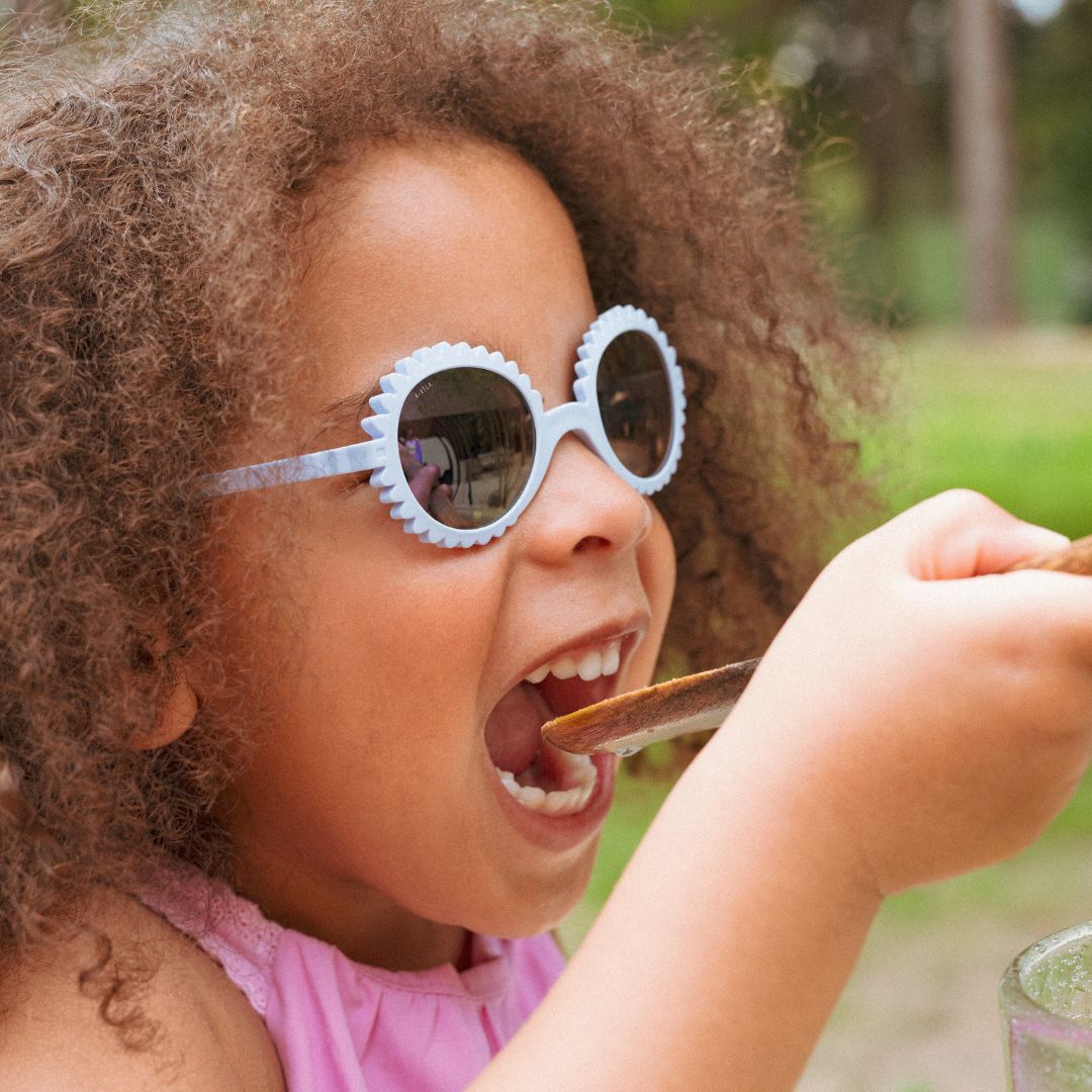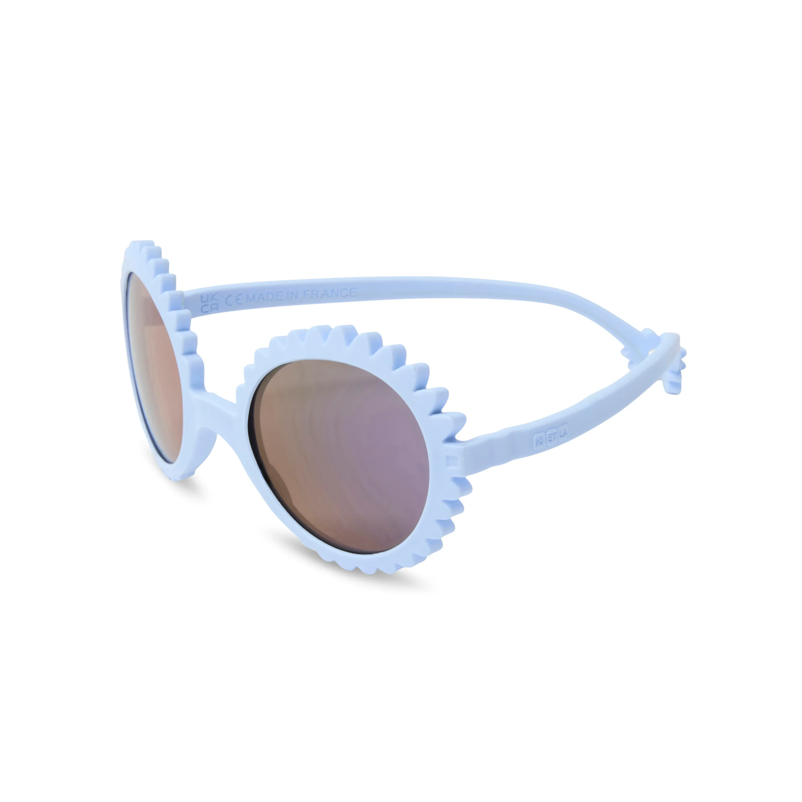 Τα γυαλιά ηλίου Kietla είναι άθραυστα, με ειδικό σχεδιασμό για να ταιριάζουν απόλυτα στα αυτάκια και στην μύτη των μικρών παιδιών ανάλογα την ηλικιακή ομάδα. Το μοντέλο Fleur συνδυάζει το στρογγυλό σχήμα με «λουλουδένια» τελειώματα που αγκαλιάζουν απαλά το πρόσωπο. Ένα φίνο και γλυκό σχέδιο που ταιριάζει απόλυτα σε μωρά και μικρά παιδιά, μετατρέποντας κάθε βόλτα σε μια στιλάτη εμπειρία.