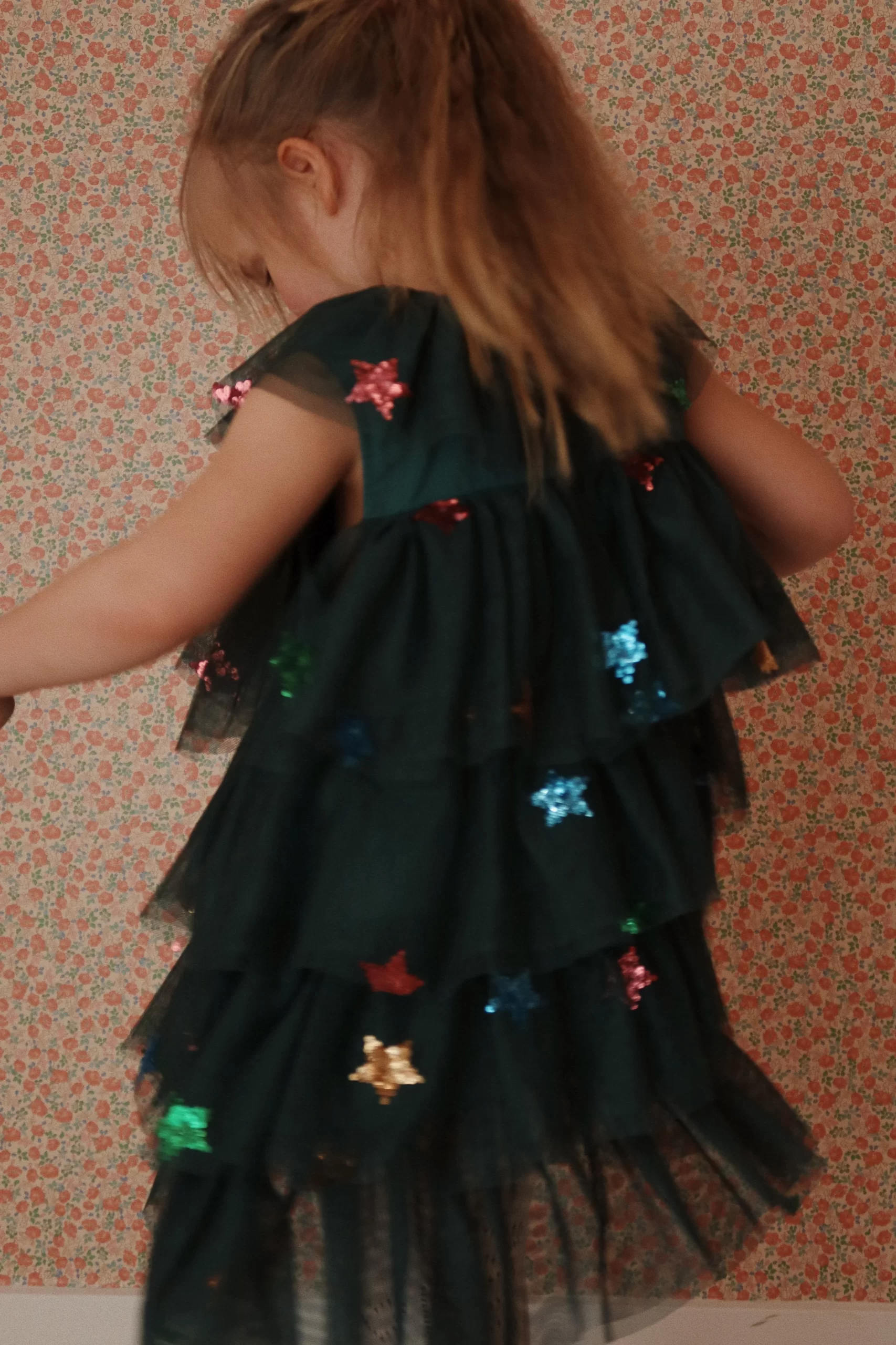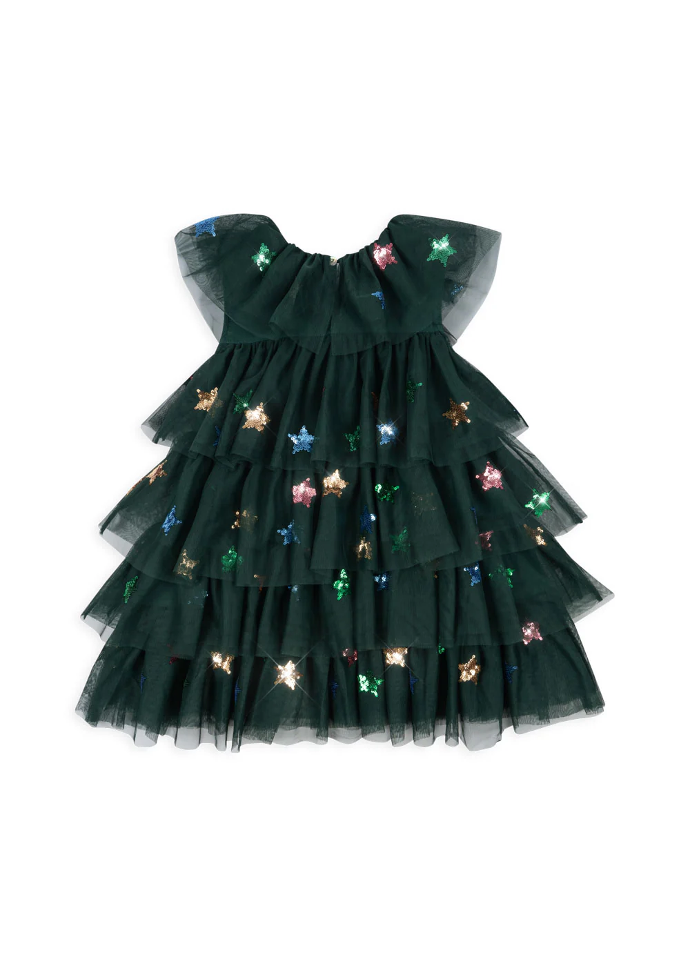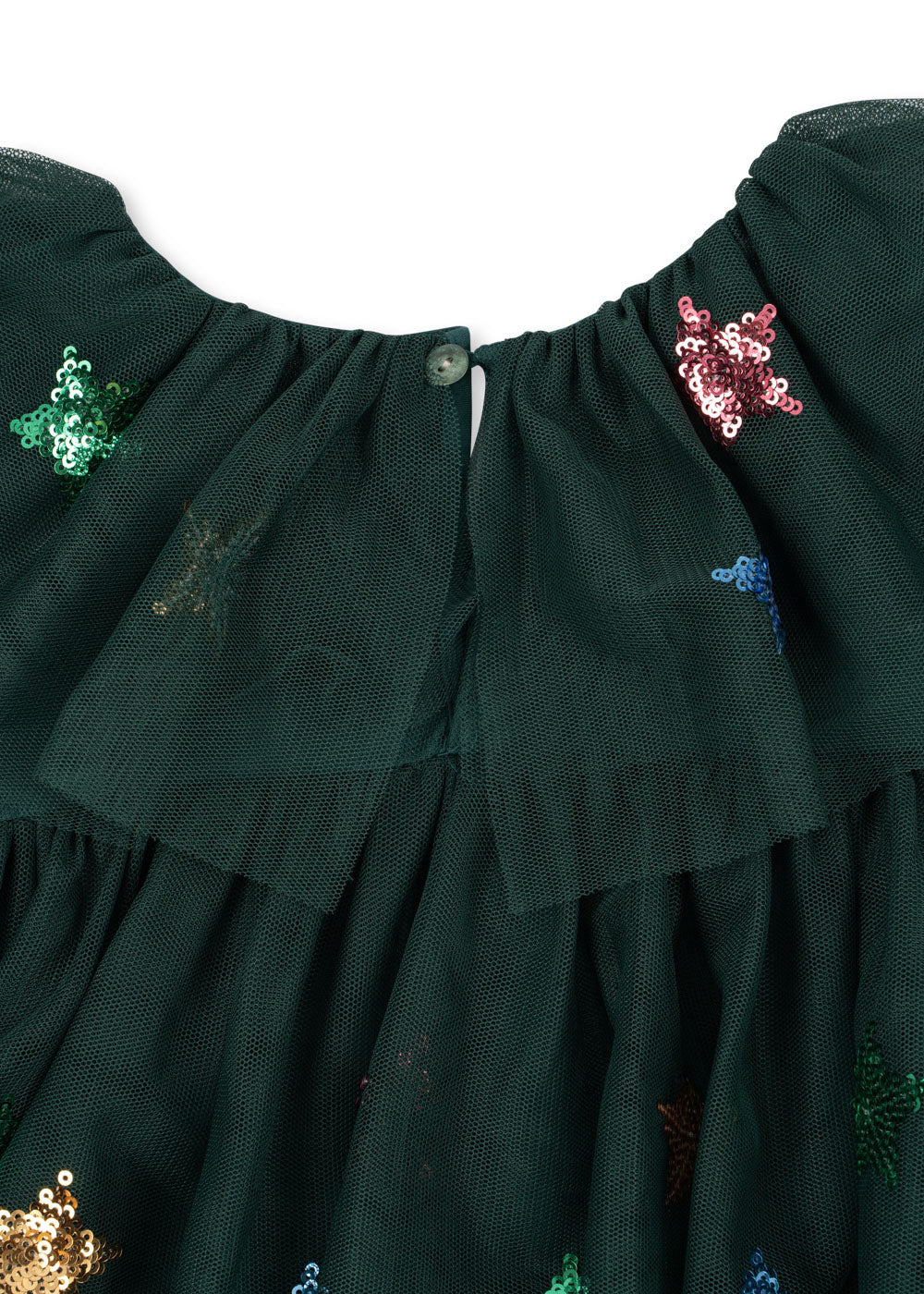 • Κομψό φόρεμα με όγκο και λάμψη. Σχεδιασμένο με στρώσεις από τούλι και απαλή βαμβακερή επένδυση.
