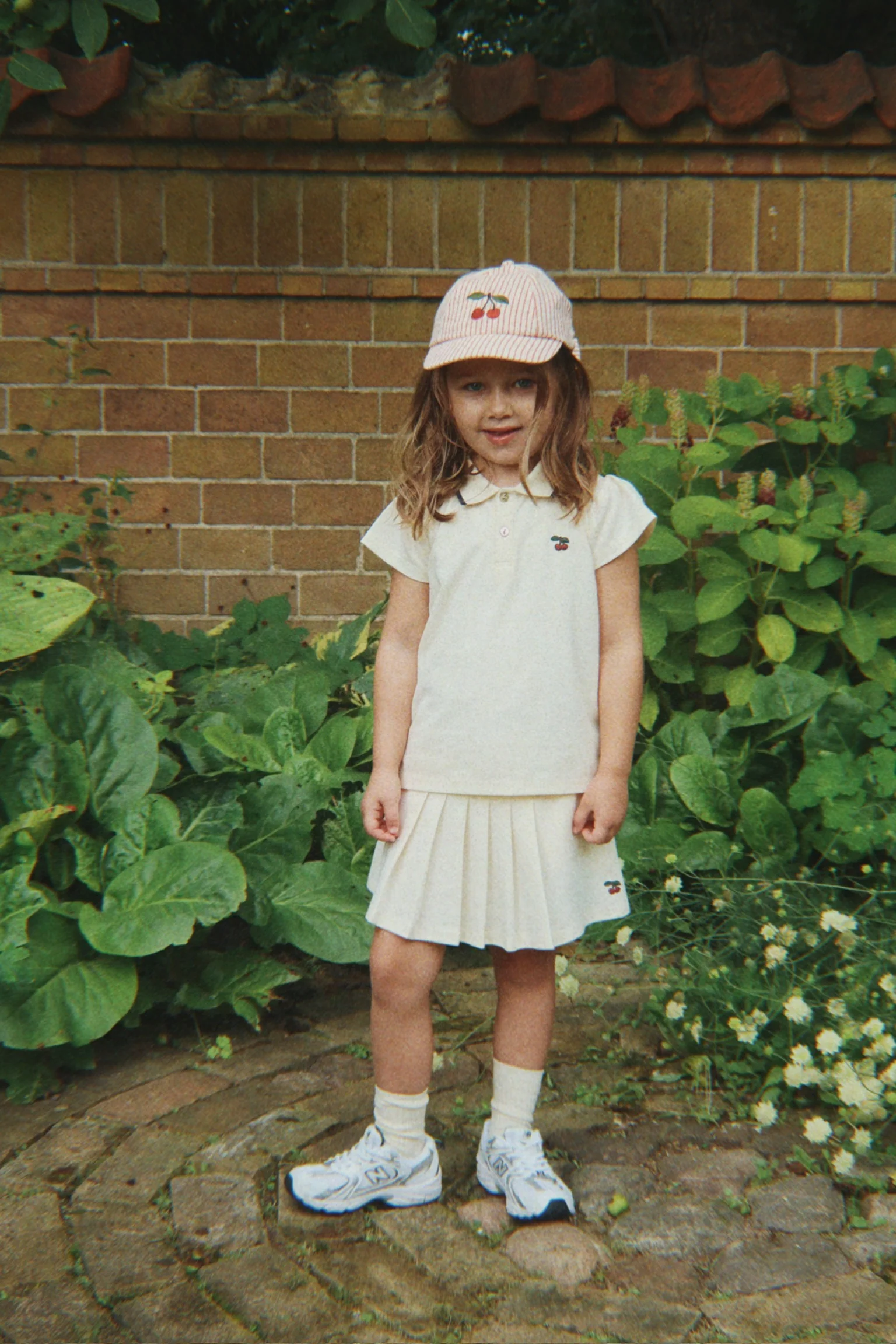 - Μαλακό καπέλο κατασκευασμένο από ύφασμα seersucker με τσαλακώσεις. Σχεδιασμένο με καμπυλωτό γείσο μπροστά και απαλό, διακοσμητικό φιόγκο που δένει πίσω.