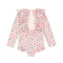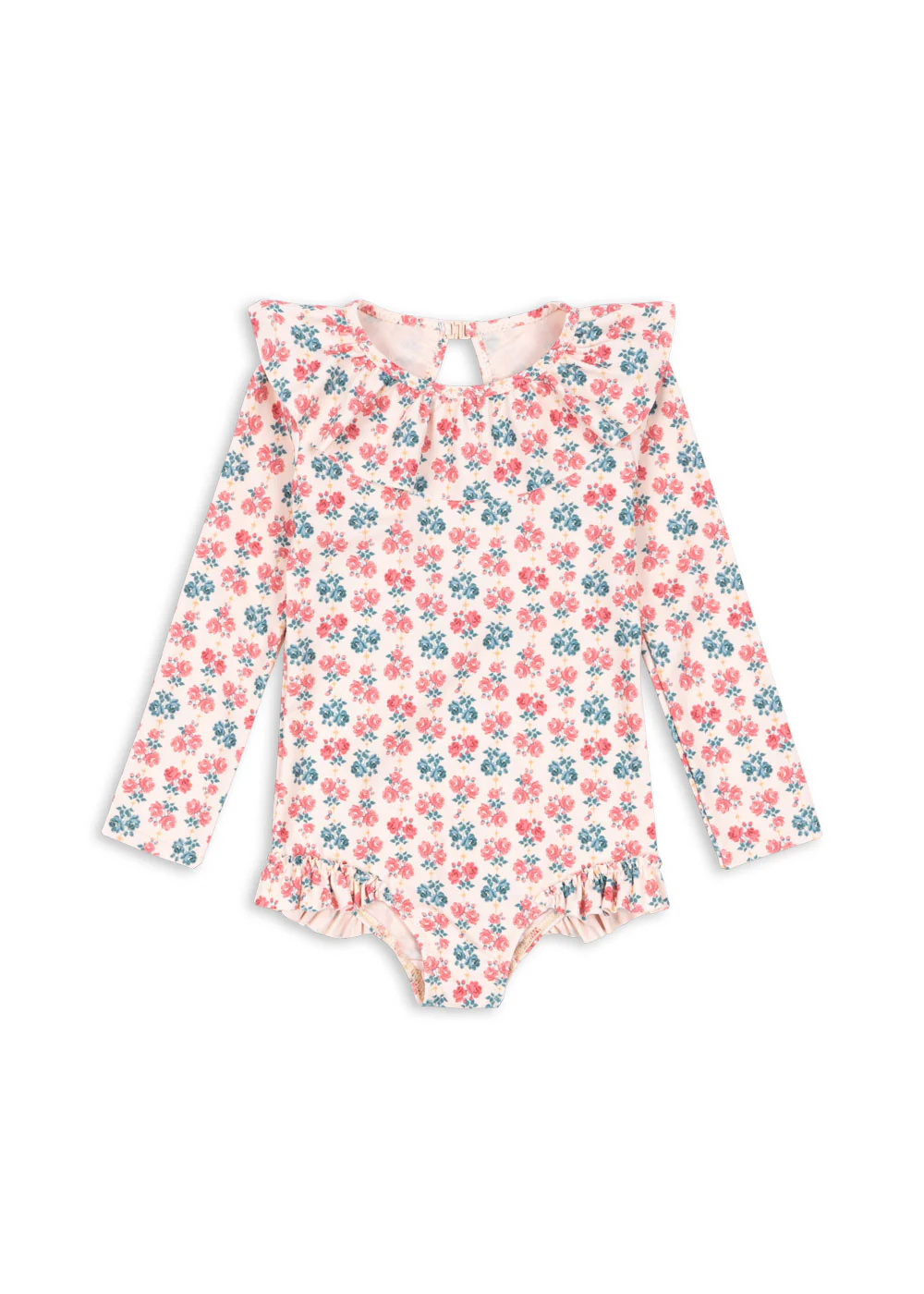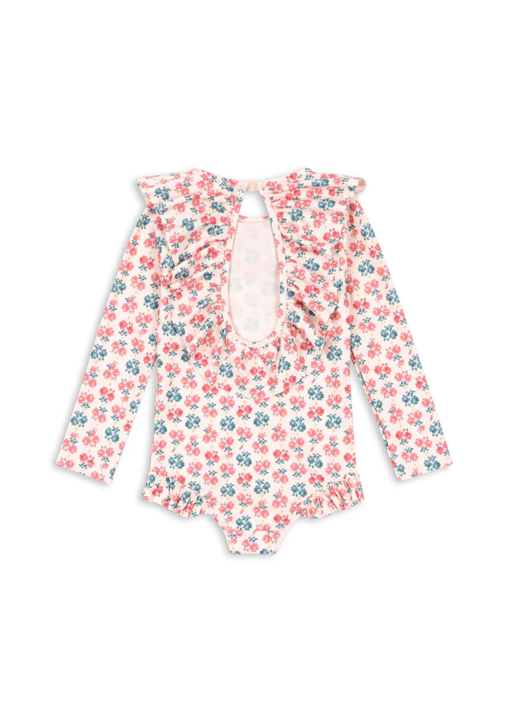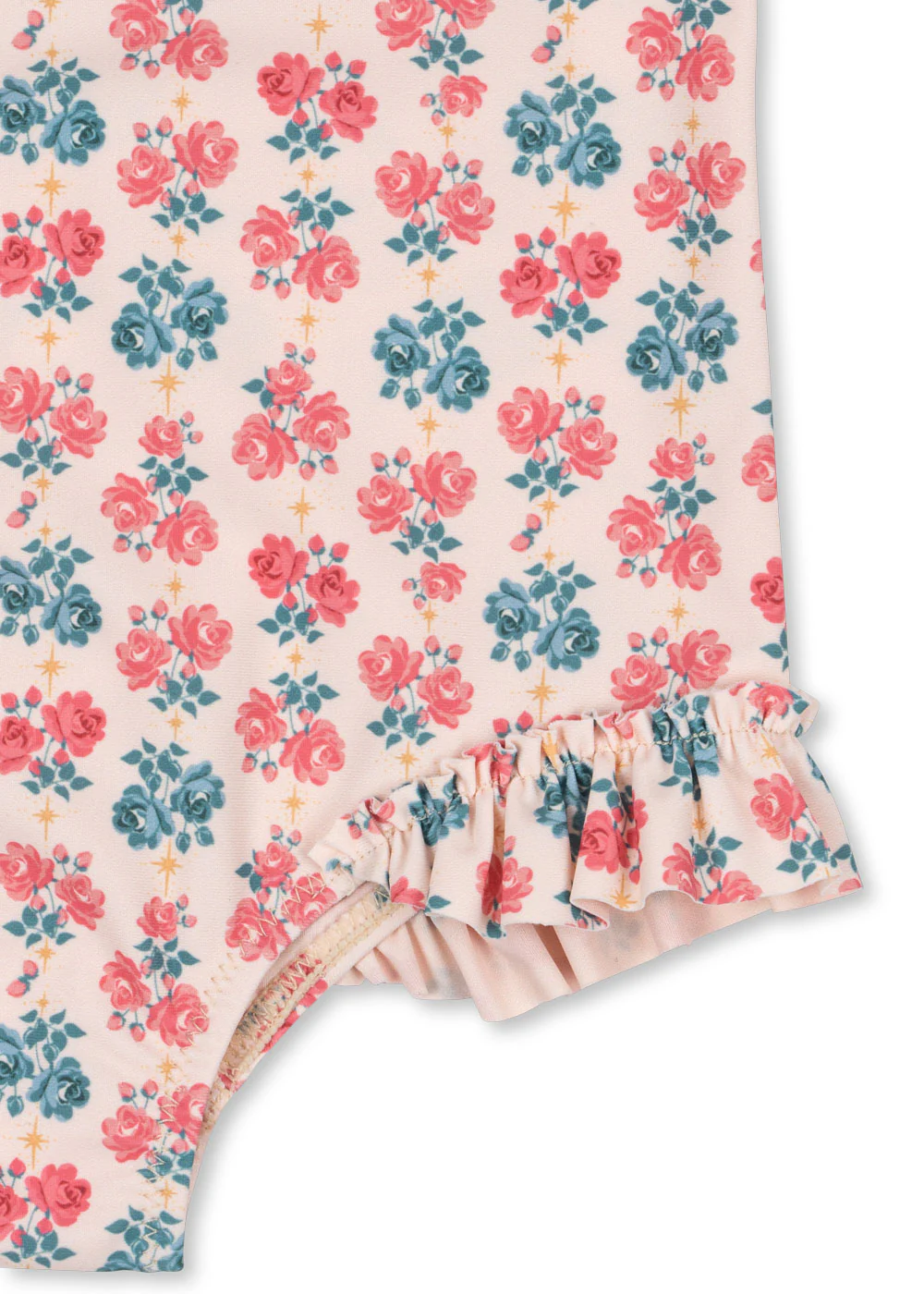 Τα μαγιό της εταιρίας Konges Slojd χρησιμοποιήσανε όσο το δυνατόν υψηλότερο φίλτρο UPV 50+. Τα χαριτωμένα σχέδια και οι διάφορες επιλογές συνδυάζονται με την καλύτερη προστασία UPV για το ευαίσθητο δέρμα του παιδιού σας. Ένα όμορφο μαγιό με ρετρό διάθεση και οικολογική διάθεση καθώς είναι κατασκευασμένο από ανακυκλωμένα πλαστικά μπουκάλια. Τα μικρά μεγέθη έως 24 μηνών διαθέτουν κουμπιά στον καβάλο για εύκολο ντύσιμο.