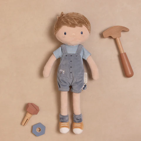 Ο Τζίμ θα γίνει ο καινούριος φίλος του παιδιού σας! Μια κομψή και χαριτωμένη βελούδινη κούκλα με χαλαρό ντύσιμο, ιδανική τόσο για αγκαλιές όσο και για ατελείωτο παιχνίδι. Μπορεί να καθίσει δίπλα σας και να σας κρατήσει συντροφιά μέσα στο σπίτι, αλλά και σε όλες σας τις εκδρομές.