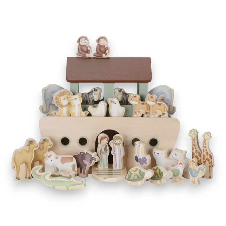 Αυτό το σετ 25 τεμαχίων περιλαμβάνει την Κιβωτό με μια ανοιγόμενη πόρτα και ένα κατάστρωμα που μπορούν να ανυψωθεί για να μπουν όλα τα ζώα. Ο Νώε φέρνει τη σύζυγό του και μια μεγάλη ομάδα ζώων στο ταξίδι του πέρα από τον ωκεανό: 2 λιοντάρια, 2 ελέφαντες, 2 ζέβρες, 2 μαϊμούδες, 2 περιστέρια, 2 κροκόδειλους, 2 χελώνες, 2 καμηλοπάρδαλες, 2 στρουθοκάμηλους, 2 αγελάδες, μία κότα και έναν κόκορα.