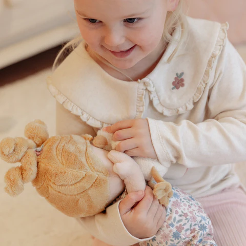 Γνωρίστε την Julia, το γλυκό κουκλάκι που είναι έτοιμο για ατέλειωτο παιχνίδι και αγκαλιές! Με το χαριτωμένο φορμάκι της, την πάνα με Velcro και το μικρό χαριτωμένο χηνάκι που τη συνοδεύει, η Julia κάνει το παιχνίδι φροντίδας, το τάισμα και το κρυφτούλι ακόμα πιο διασκεδαστικά. Χάρη στους μαγνήτες στα χεράκια και το μπιμπερό, μπορείτε να τη δείτε να «πίνει» σαν αληθινό μωρό, προσθέτοντας μια δόση μαγείας σε κάθε στιγμή παιχνιδιού. Μαλακή και γεμάτη προσωπικότητα, η Julia είναι η ιδανική σύντροφος για τρυφερές περιπέτειες και παιχνίδι φαντασίας!