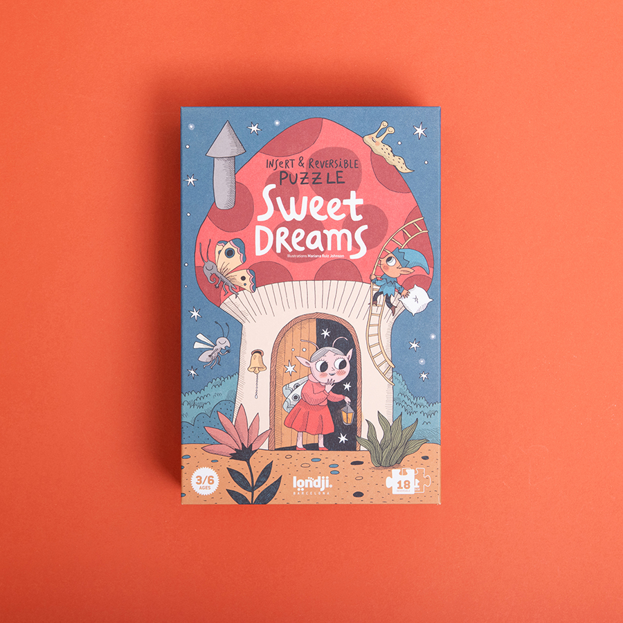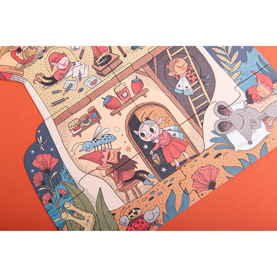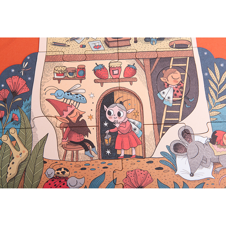 Σσσς, κάντε ησυχία! Η νεράιδα του ύπνου έφτασε και σας εύχεται όνειρα γλυκά! Συναρμολογήστε το παζλ 18 κομματιών. Από τη μία πλευρά απεικονίζεται το εξωτερικό του μαγικού μανιταριού στο οποίο έχει δημιουργήσει το σπίτι της η μικρή νεράιδα, ενώ από την άλλη, το εσωτερικό του οποίου θα ανακαλύψετε όλους τους κοιμισμένους φίλους της.
