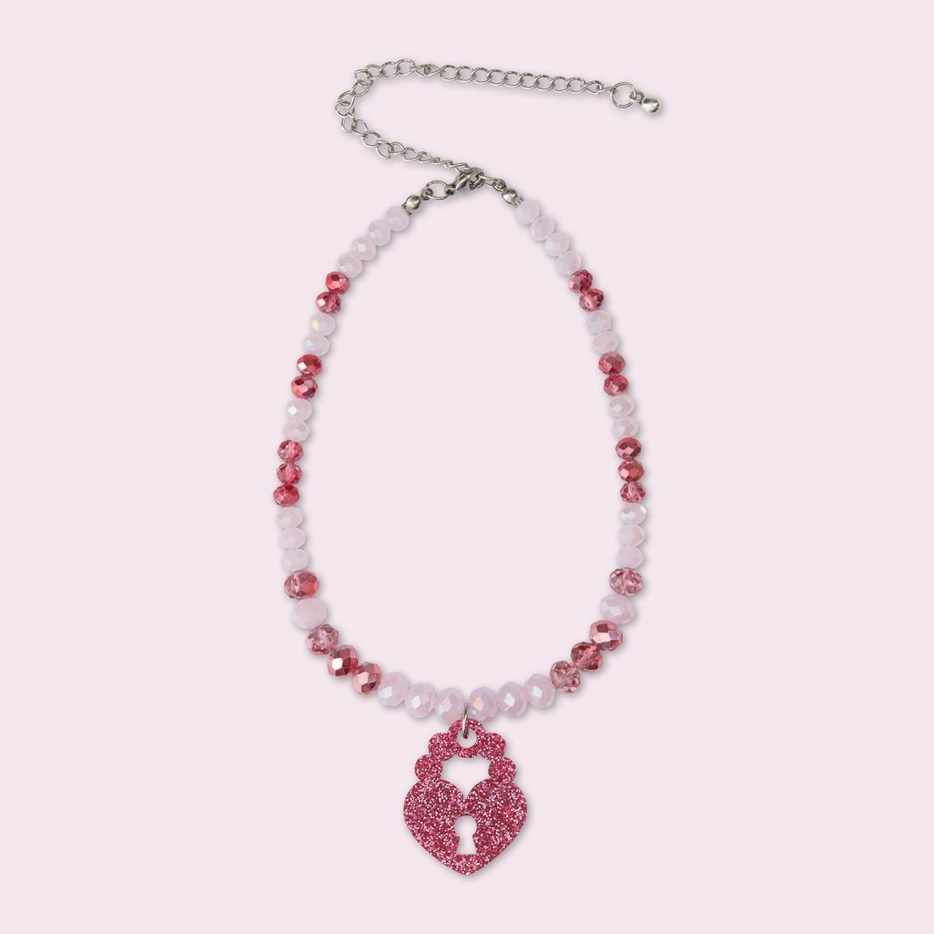 Κολιέ παγωτό σε φλούο και γκλίτερ ροζ με γυάλινες χάντρες.