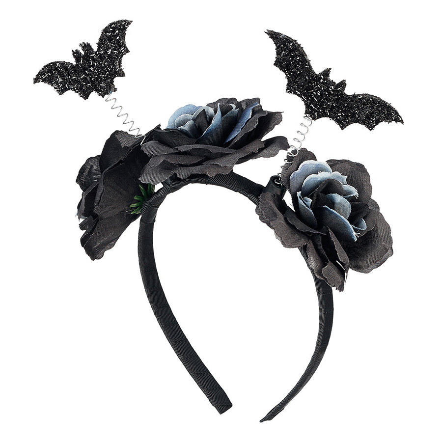 Στέκα διακοσμημένη με μαύρα τριαντάφυλλα και νυχτερίδες. Πλάτος στέκας: 1.5 εκ. Διαστάσεις συσκευασίας: 15 x 13 x 3 εκ.